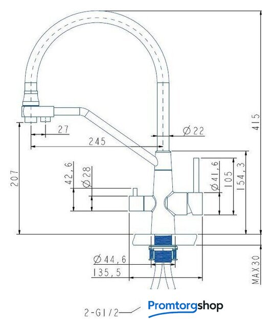 | Длина (вылет) излива | 245 — 245 мм |