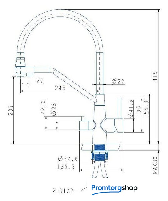 | Длина (вылет) излива | 245 мм |