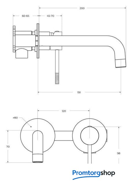 | Длина (вылет) излива | 191 мм |
