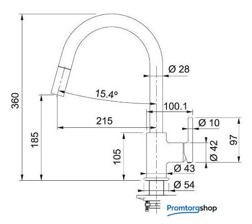Длина (вылет) излива | 215 мм |