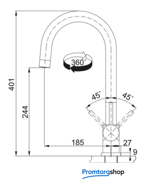 | Поворотный излив | 360 ° |