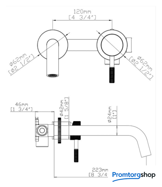| Длина (вылет) излива | 223 мм |