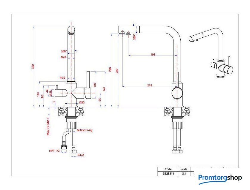| Высота излива | 290 мм |