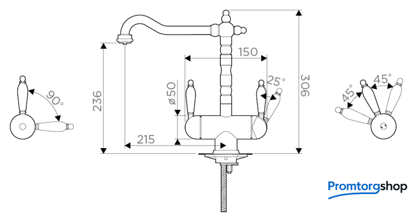 | Поворотный излив | 360 ° |