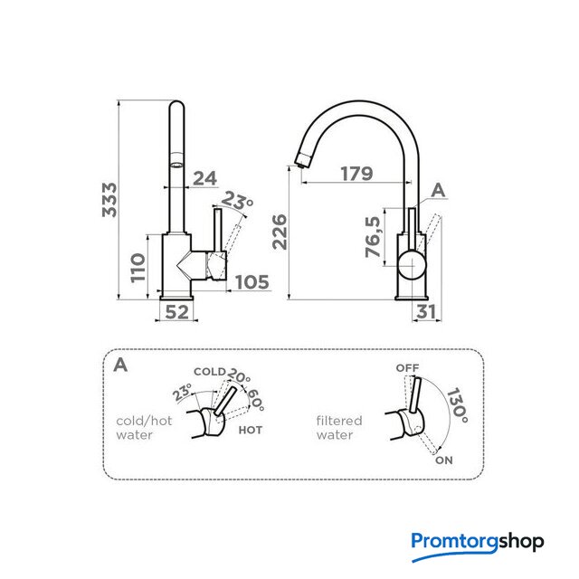 Длина (вылет) излива | 179 мм |