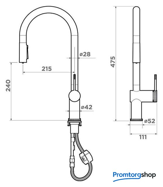 | Душевой гарнитур | с 1 режимом |