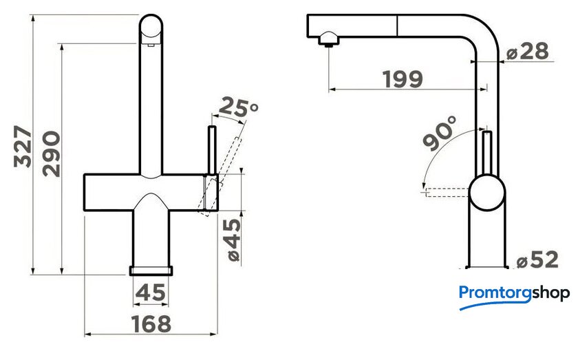 | Поворотный излив | 90 ° |