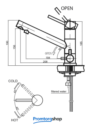 Длина (вылет) излива | 208 мм |