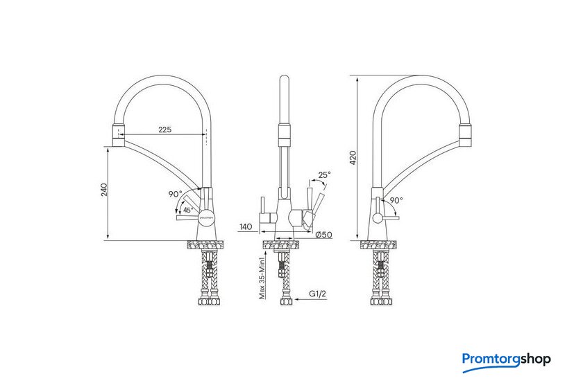 Поворотный излив | 360 ° |