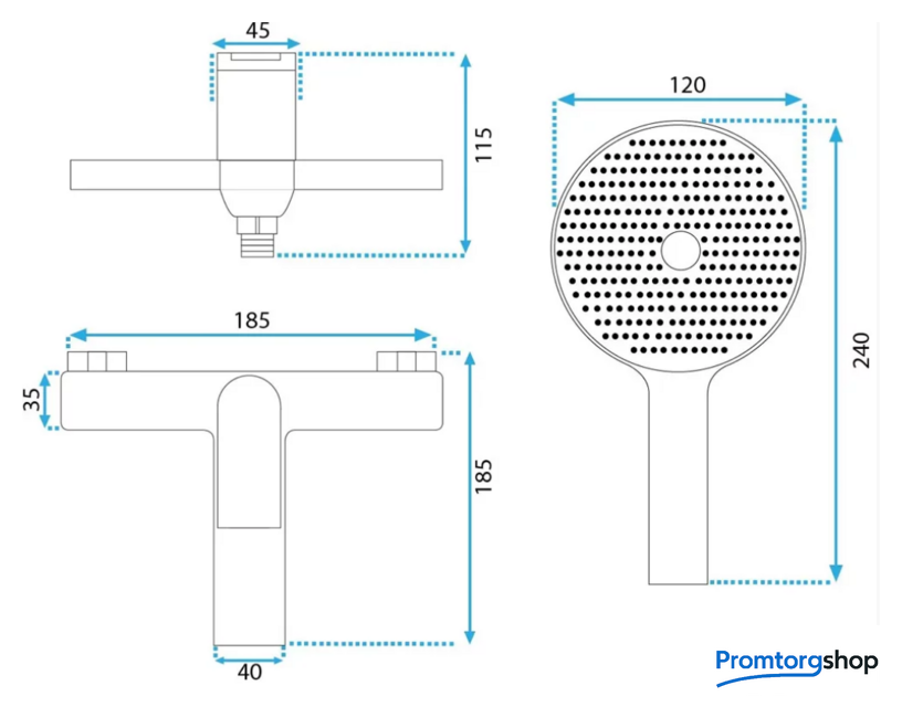 | Диаметр (ширина) ручного душа | 120*240 мм |