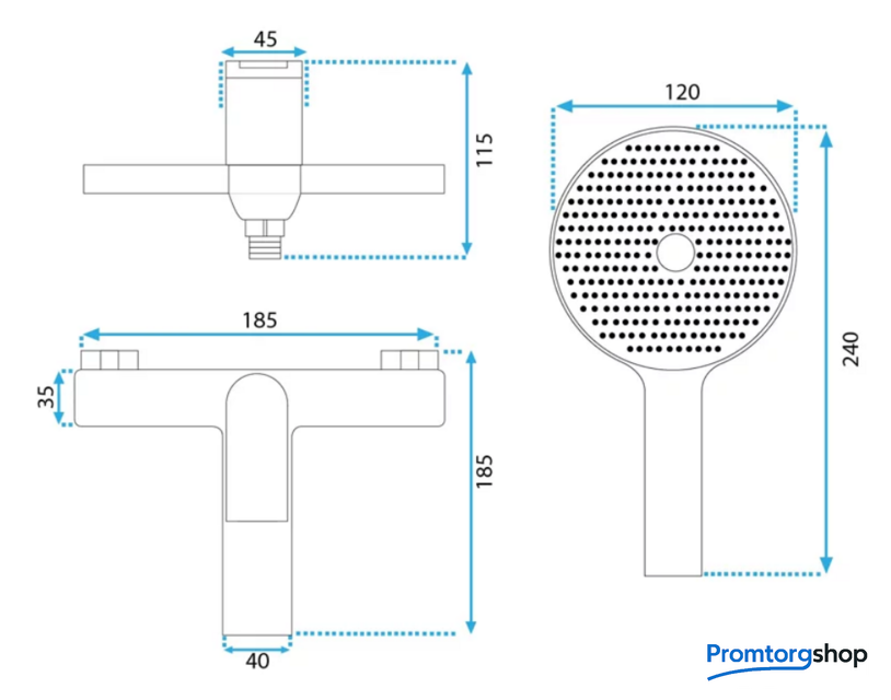 | Диаметр (ширина) ручного душа | 120*240 мм |
