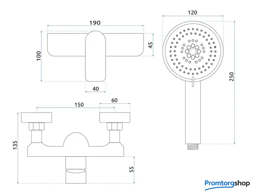 Диаметр (ширина) ручного душа | 120 мм |