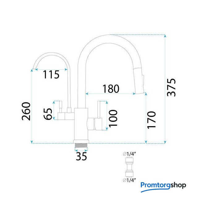 Высота излива | 170 мм ( 260 мм для фильтрованной воды) |