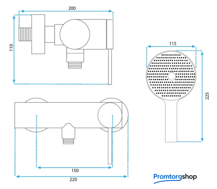 | Диаметр (ширина) ручного душа | 115*225 мм |