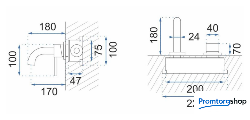 | Длина (вылет) излива | 180 мм |