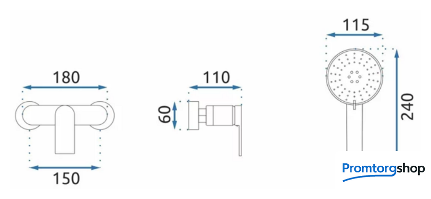 | Диаметр (ширина) ручного душа | 115*240 мм |