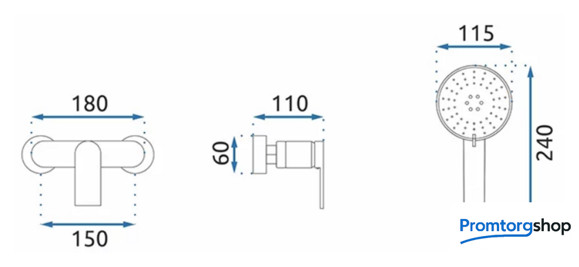 | Диаметр (ширина) ручного душа | 115*240 мм |