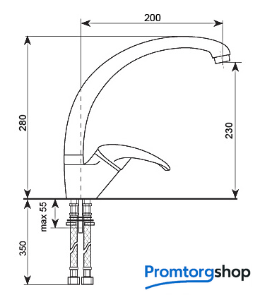 | Длина (вылет) излива | 200 мм |