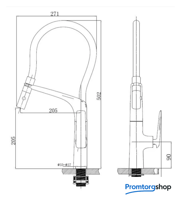 | Выдвижной/гибкий излив | Поворотный гибкий шланг |