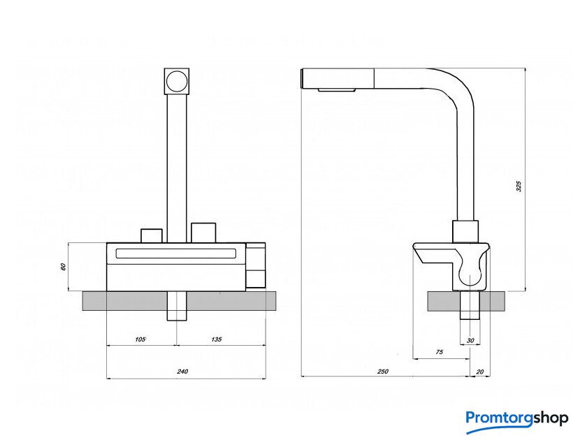 | Длина (вылет) излива | 250 мм |