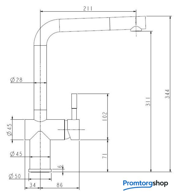Длина (вылет) излива | 211 мм |