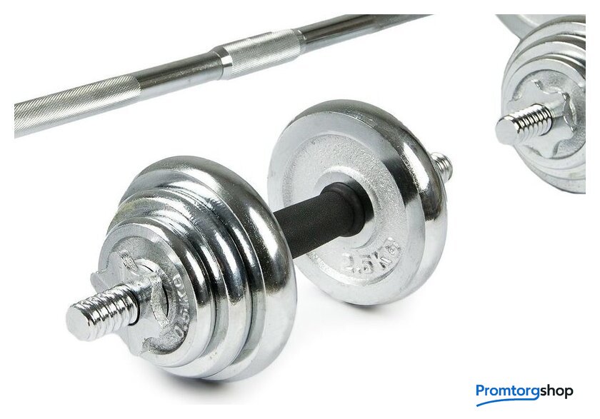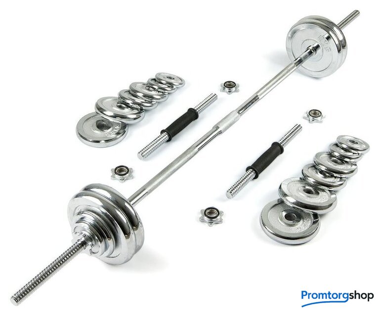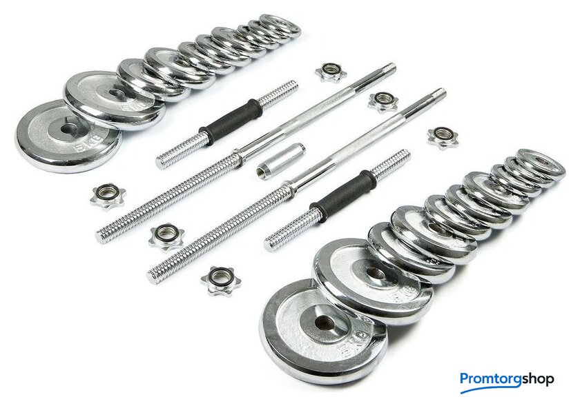 | Комплектация | - Диски 0.5 кг - 6 шт. (диаметр диска 9 см, толщина 1,5см)- Диски 1.25 кг - 6 шт. (диаметр диска 11 см, толщина 2,5 см)- Диски 2.5 кг - 4 шт. (диаметр диска 14 см, толщина 2,6 см)- Диски 5 кг - 4 шт .(диаметр диска 19см, толщина 3см)- Гриф для гантелей (L: 355 мм, D: 25 мм) - 2 шт., 1.66 кг- Гриф для штанги (L: 1500 мм, D: 25 мм) - 1шт., 6.5 кг |