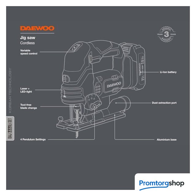 | Комплект поставки | - Лобзик - 1 шт.- Аккумулятор 2,0 Ач - 1 шт.- Зарядное устройство - 1 шт.- Пильное полотно -1 шт .- Шестигранный ключ -1 шт .- Руководство по эксплуатации - 1 шт.- Коробка |