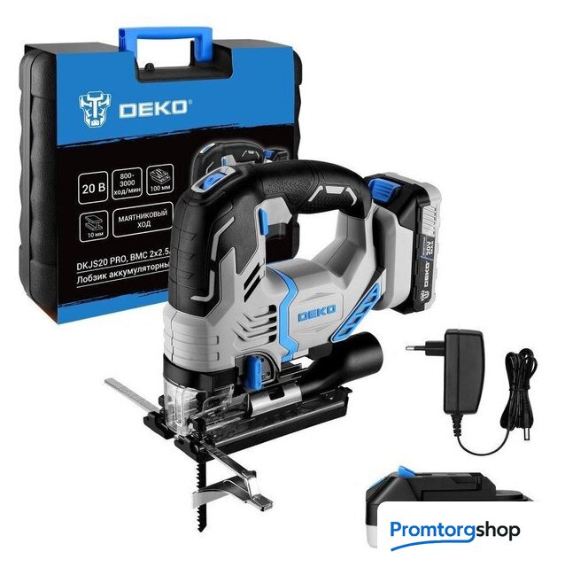 Комплект поставки | - Лобзик – 1 шт.- Аккумулятор 2,5 Ач – 2 шт.- Зарядное устройство – 1 шт.- Пильное полотно – 1 шт.- Параллельный упор – 1 шт.- Пылесборник - 1 шт.- Руководство по эксплуатации.- Кейс. |