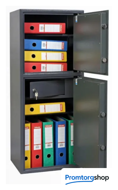 | Тип | Офисный металлический сейф с 2 отдельными секциями разной величины. В нижней секции находится кассовая ячейка (трейзер). Сейф прошел испытания ГОСТ Р 55148-2012 п. 4.1 и обладает S1 классом устойчивости к взлому. Его размеры составляют: высота — 1063 мм, ширина — 435 мм и глубина — 360 мм. В хранилище можно удобно разместить до 10 стандартных офисных папок. Верхняя секция (без тайника) разделена полкой и вмещает 4 папки, нижняя с трейзером и полкой — 6. Каждая дверь оснащена импортным ключевым замком MAUER (Германия), Border или Lowe&Fletcher (Великобритания) и ригельной системой запирания с защитой от выбивания. Область замка защищена пластиной из высоколегированной марганцовистой стали, которая практически не поддается механической обработке. Чтобы обезопасить свое имущество от выноса из помещения вместе с сейфом, рекомендуется закреплять его при помощи анкерных болтов к стене или полу (необходимые отверстия предусмотрены в конструкции). Благодаря таким мерам предосторожности, вы сможете перечеркнуть все планы злоумышленников касательно вскрытия тайника в безопасном для них месте. |