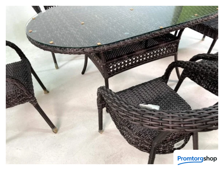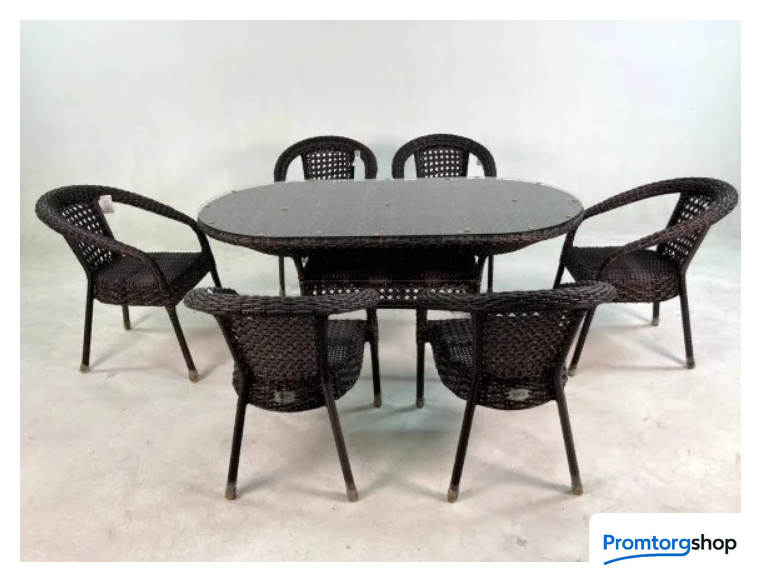 | Тип | обеденная группа. Комплект плетеной мебели из искусственного ротанга на 6 персон. Не боится влаги, прямых солнечных лучей, мороза. Не требует особого ухода. Легко моется. Рекомендованная температура эксплуатации -16/+50. Нить плоская. В комплекте: стол д. 60 см, 2 кресла. Подушки можно приобрести отдельно. Столешница - каленое стекло 6 мм. Гарантия 2 года! Прекрасно подходит для веранды, террасы или небольшой кухни. Оптимальные размеры комплекта и полноценный обеденный стол совмещают в себе место для отдыха и для трапезы. |