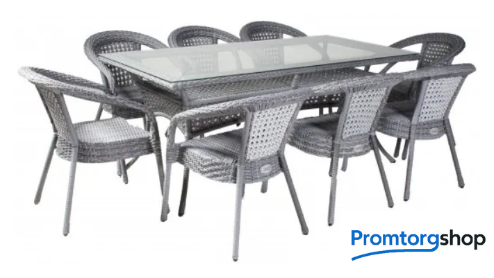 | Тип | обеденная группа. Комплект плетеной мебели из искусственного ротанга на 8 персон. Не боится влаги, прямых солнечных лучей, мороза. Не требует особого ухода. Легко моется. Рекомендованная температура эксплуатации -16/+50. Нить плоская. В комплекте : стол обеденный прямоугольный , 8 кресел. Подушки можно приобрести отдельно. Гарантия 2 года! Комплект для большой компании. Подходит для загородного дома, дачи или летней площадки во дворе. |