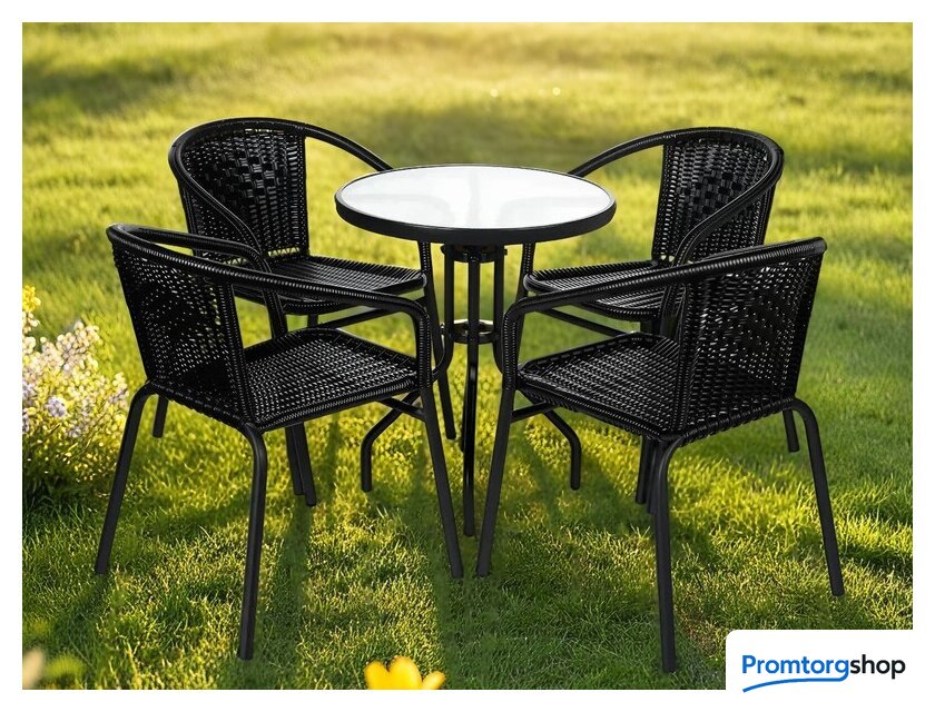 Материал столешницы | искусственный ротанг, закаленное стекло 5 мм. Цвет столешницы коричневый, прозрачный |