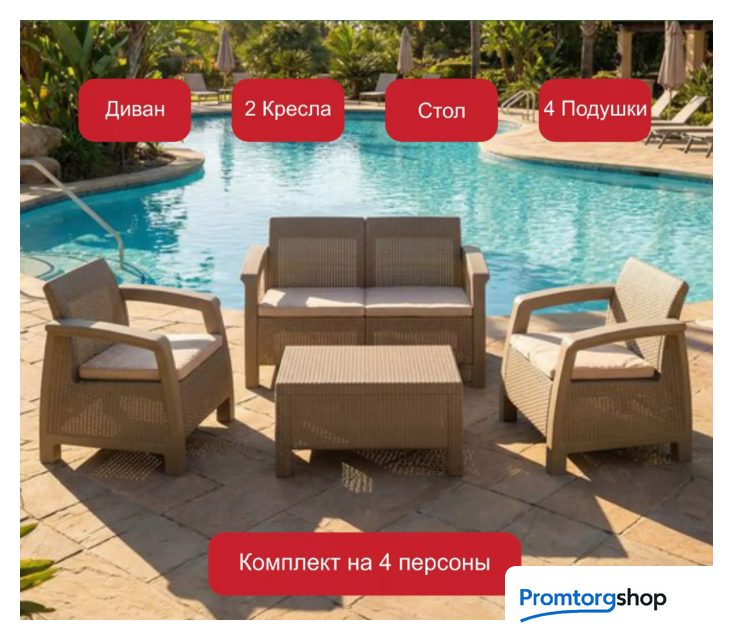 | Тип | набор для отдыха. Для дачи, Для беседки, Для бассейна, Для бани, Для офиса, Для пляжа, Для сада, Для улицы |