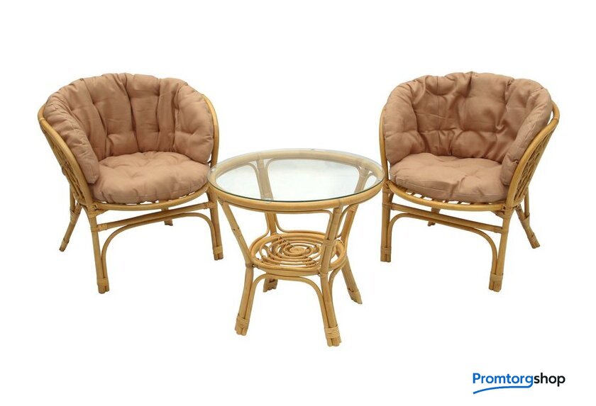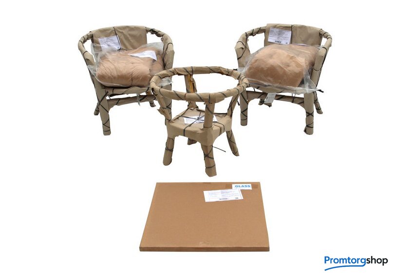 | Тип | набор для отдыха, для веранды/загородного дома. Максимальная нагрузка стула 90кг. Условия хранения: не ниже +2°C, относительная влажность воздуха 40% – 75%.Форма поставки в собранном виде |