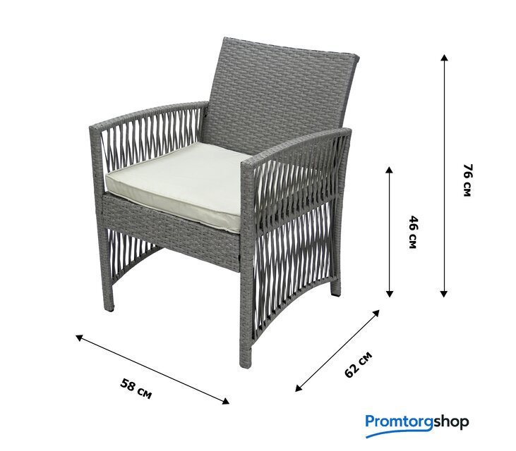 | Тип | набор для отдыха. Максимальная нагрузка мебели для сидения 120 кг. для веранды/загородного дома. Форма поставки в разобранном виде |