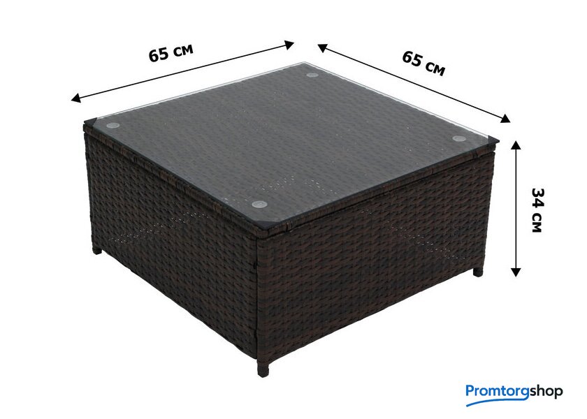 | Материал столешницы | искусственный ротанг, закаленное стекло. Цвет столешницы коричневый (+ прозрачное стекло). Толщина столешницы 5 мм |