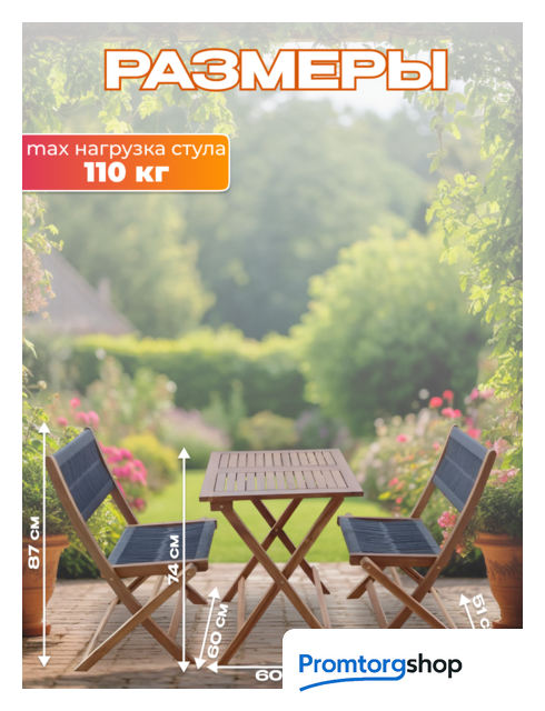 | Состав набора | стол (1 шт.), стул (2 шт.). Максимальная нагрузка мебели для сидения 110 кг |