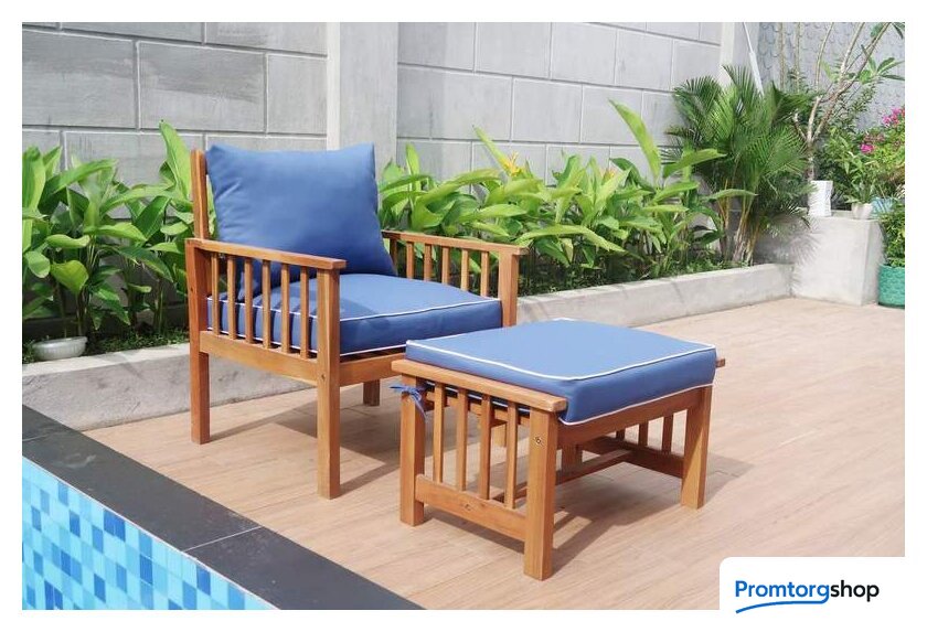 Тип | комплект садовой мебели, для веранды/загородного дома. Порода дерева акация. Покрытие (обработка поверхности) пропитка (водоотталкивающая).Форма поставки в разобранном виде. Максимальная нагрузка мебели для сидения 120 кг |