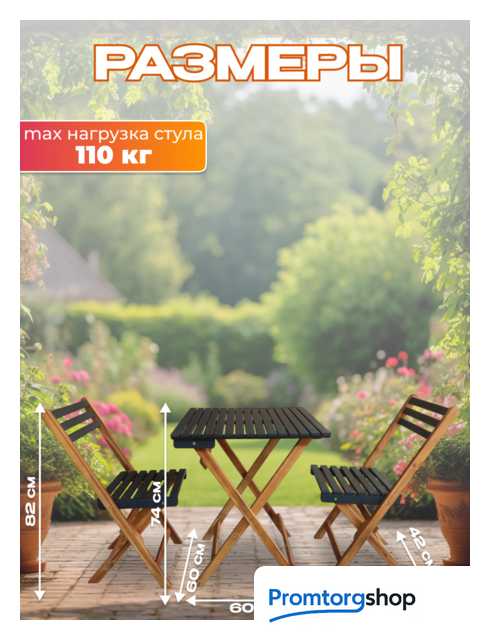 | Состав набора | стол (1 шт.), стул (2 шт.). Максимальная нагрузка мебели для сидения 110 кг |