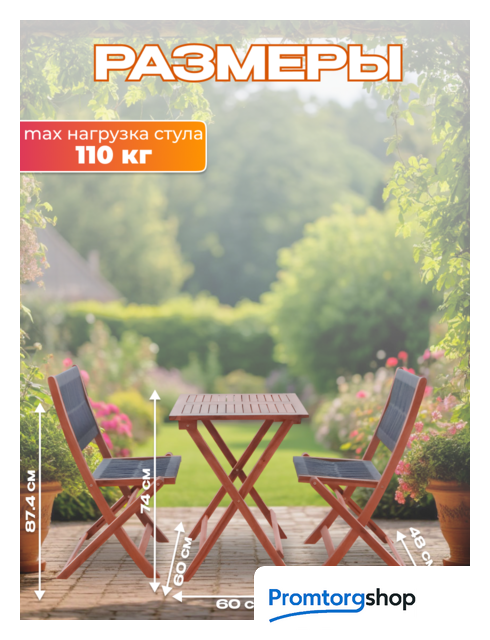 Состав набора | стол (1 шт.), стул (2 шт.). Максимальная нагрузка мебели для сидения 110 кг |
