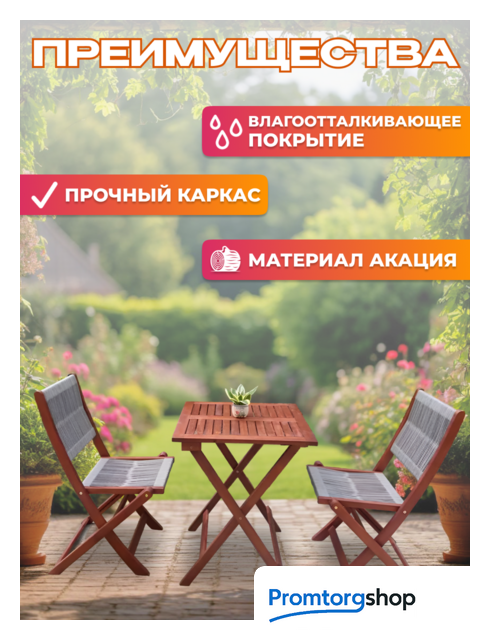 Тип | комплект садовой мебели для веранды/загородного дома, для кафе/ресторана/отеля, для лоджии/балкона. Форма поставки в разобранном виде. Этот набор садовой мебели из акации станет прекрасным дополнением к вашему загородному участку, создавая уютное и функциональное пространство для отдыха и общения с близкими. Натуральная древесина акации, известная своей прочностью и долговечностью, придает мебели элегантный и естественный вид. Бежево-серый оттенок гармонично впишется в любой ландшафтный дизайн, добавляя нотку природной красоты. Складная конструкция стульев и стола позволяет легко хранить и перемещать мебель, что особенно удобно для небольших участков или в зимний период. Влагоотталкивающая пропитка защищает древесину от воздействия влаги и ультрафиолетовых лучей, продлевая срок службы мебели и сохраняя ее первоначальный вид. |