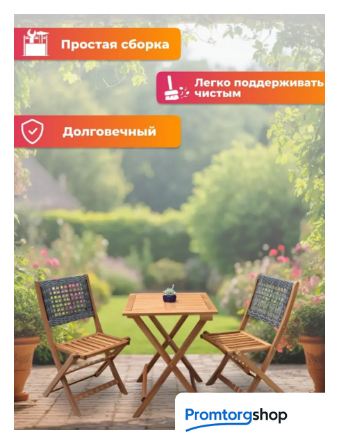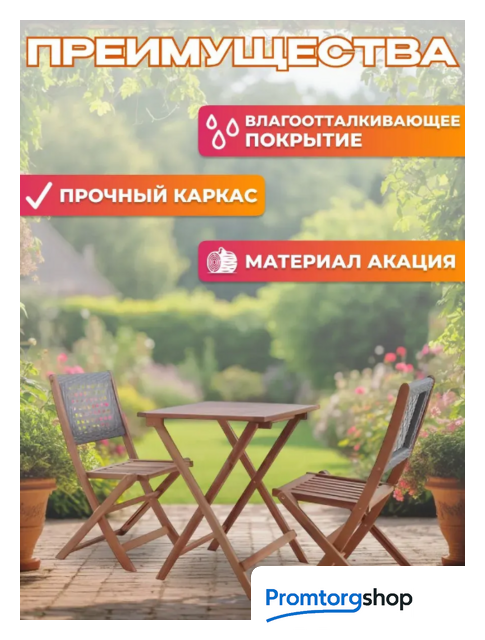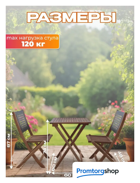 | Состав набора | стол (1 шт.), стул (2 шт.). Максимальная нагрузка мебели для сидения 120 кг |