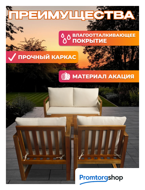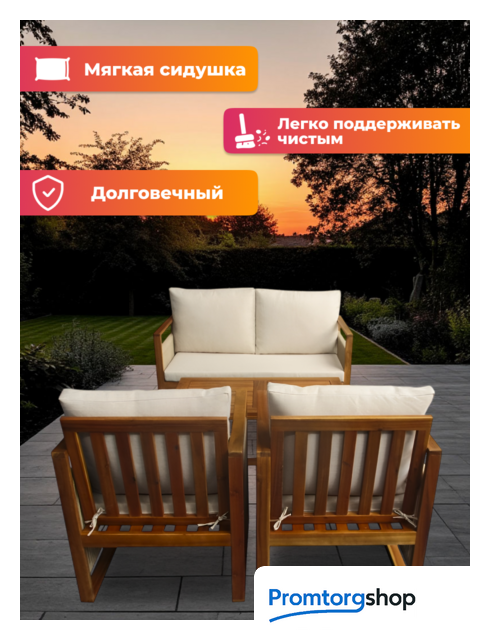 | Тип | комплект садовой мебели для веранды/загородного дома. Форма поставки в разобранном виде. Этот набор садовой мебели станет настоящим украшением вашего сада или веранды, создавая атмосферу уюта и комфорта для отдыха с семьей и друзьями. Продуманный дизайн и качественные материалы гарантируют долговечность и приятный внешний вид на протяжении многих лет. Древесина акации, из которой изготовлен каркас мебели, отличается высокой прочностью и устойчивостью к погодным условиям. Влагоотталкивающая пропитка дополнительно защищает дерево от гниения и деформации, что особенно важно при использовании на открытом воздухе. Мягкие сиденья, обтянутые текстилем, обеспечивают максимальный комфорт во время отдыха. Просторные диваны рассчитаны на 6 человек, позволяя удобно разместиться большой компании. Два кресла дополняют ансамбль, предоставляя дополнительные места для сидения. Стол прямоугольной формы идеально подходит для чаепитий, настольных игр или просто для размещения напитков и закусок. Уход за мебелью не потребует особых усилий. Достаточно периодически протирать ее влажной тканью или мягкой щеткой. Благодаря своей надежности и неприхотливости, этот набор садовой мебели будет радовать вас своим внешним видом и функциональностью на протяжении многих лет. |