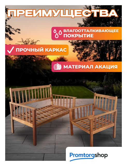 | Материал каркаса | дерево (акация). Покрытие пропитка (влагоотталкивающая) |