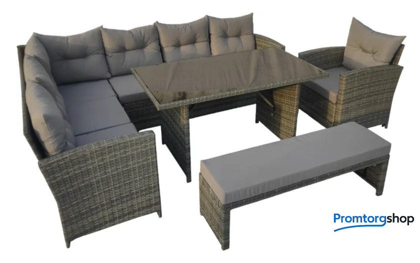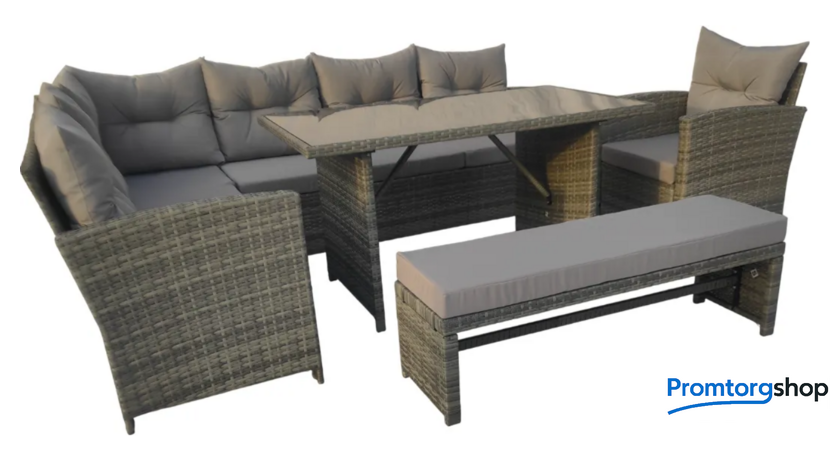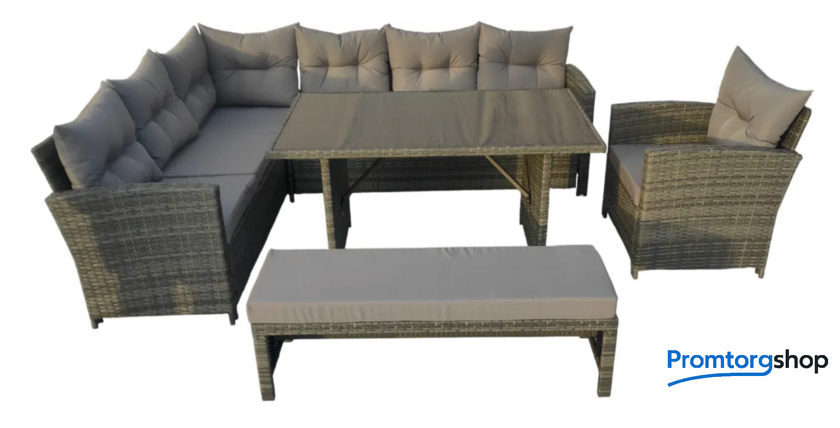 | Состав набора | диван (1 шт.), скамья (1 шт.), стол (1 шт.), кресло (1 шт.) Диван угловой, Расположение угла левое. Форма поставки в разобранном виде. |