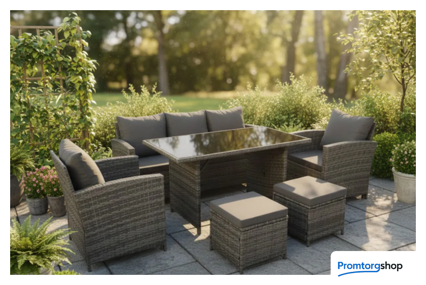 | Тип | набор для отдыха для веранды/загородного дома на 7 чел. Комплект садовой мебели из шести предметов создает комфортную зону отдыха для загородного дома, веранды, террасы или сада. В набор входят прямоугольный стол, диван, два кресла и два пуфа, что позволяет разместить до семи человек. Мебель выполнена в стиле плетения из искусственного ротанга серого цвета с металлическим каркасом. Использование прочных материалов способствует долговечности, устойчивости к погодным условиям и УФ-излучению и сохранению внешнего вида. Столешница из закаленного стекла толщиной 5 мм имеет черный цвет, а мягкие сиденья и спинки дополнены подлокотниками. Текстильные подушки цвета капучино входят в комплект — семь для сиденья и пять для спинки. Продуманные габариты предметов позволяют эффективно использовать пространство, создавая просторную и функциональную зону для приема гостей. Диван имеет размеры 168×67×75 см, стол — 130×75×69 см, кресла — 68×67×75 см, а компактные пуфы — 40×40×30 см. Общий вес комплекта составляет 78 кг, мебель поставляется в разобранном виде в двух упаковках. Сочетание прочной конструкции, устойчивого к внешним воздействиям плетения и продуманной эргономики формирует гармоничное пространство для отдыха. Комплект мебели для сада объединяет практичность и современный дизайн, создавая атмосферу уюта на открытом воздухе. Форма поставки в разобранном виде. |