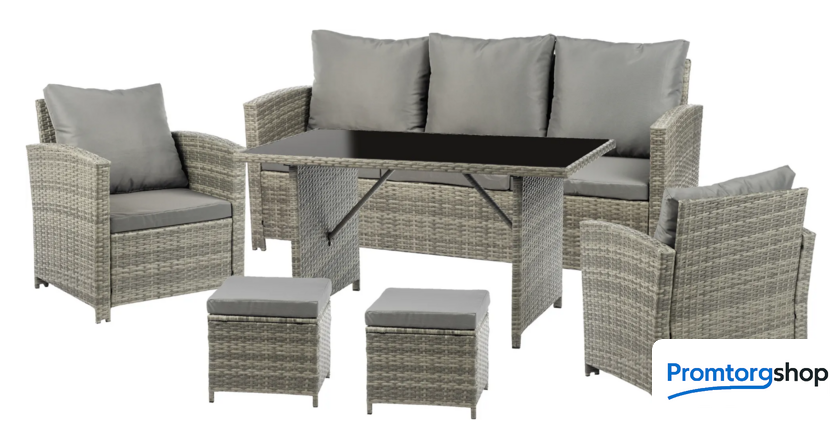 | Состав набора | стол, кресло (2 шт.), пуф (2 шт.), диван |