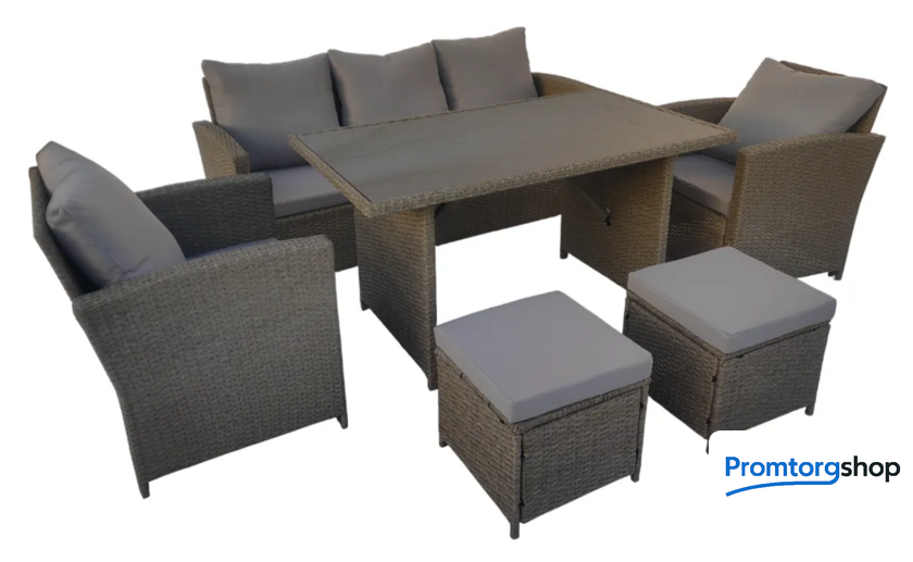 | Состав набора | стол, кресло (2 шт.), пуф (2 шт.), диван |