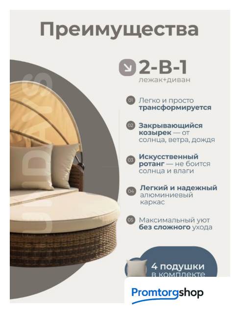 | Материал основания | алюминий, искусственный ротанг. Максимальная нагрузка 150 кг |