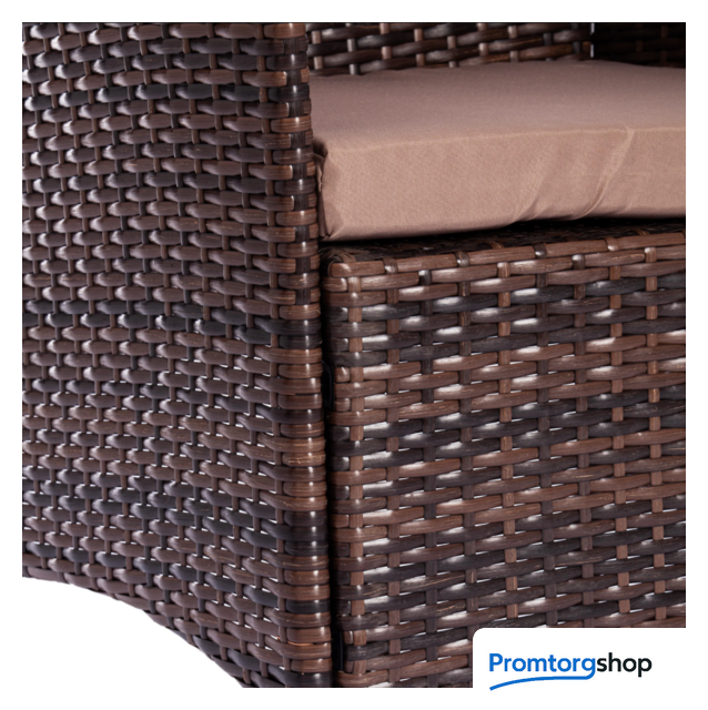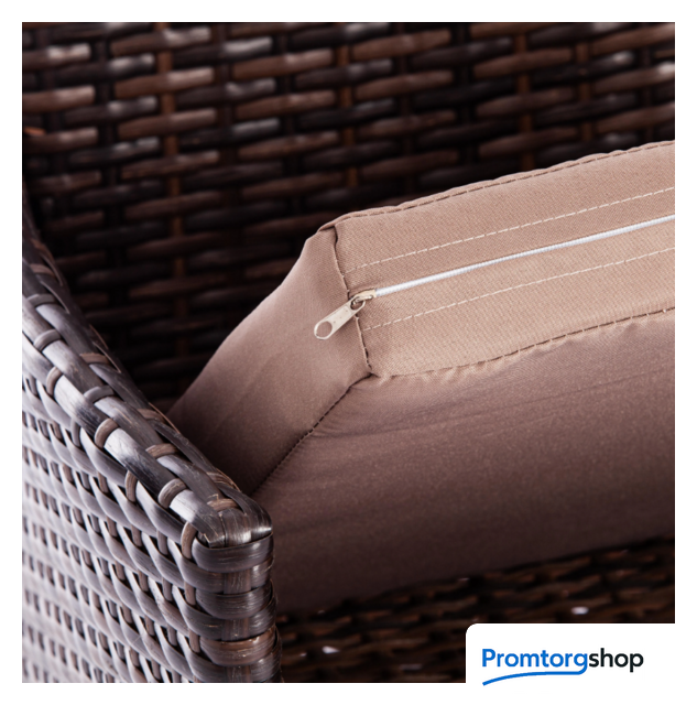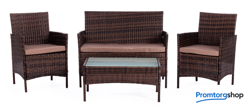 | Тип | комплект садовой мебели на 4 чел. Легкость и простота дизайна комплекта садовой мебели «Лаундж сет» из коллекции Lounge помогут создать атмосферу уюта и спокойствия на летней веранде, террасе или в саду. Изысканный и лаконичный набор будет прекрасно смотреться в любом загородном доме, кафе или ресторане, четко передавая безупречный вкус своих владельцев. В комплект входят четыре предмета мебели — диван, два кресла и стол. Устойчивый каркас из металла прочен и надежен. Удобная спинка и вместительное сиденье изготовлены из искусственного ротанга. Такой материал устойчив к воздействиям влаги, перепадам температур и ультрафиолету. Мягкие подушки выполнены из полиэстра с пропиткой от дождя. Столешница из стекла износостойка и долговечна. При длительной эксплуатации поверхность не меняет форму и не истирается, выдерживает большие нагрузки, не требует сложного ухода. Благодаря своему небольшому весу гарнитур легко перемещается в пространстве. Сочетание темно-коричневого искусственного ротанга и серой ткани выглядит стильно и элегантно. Мебель для отдыха практична и оригинальна, удивит вас своей износостойкостью, привлекательностью и надежностью, станет основным акцентом в дизайне вашего загородного дома или кафе. Комплект поставляется в разобранном виде. Необходима несложная сборка по прилагаемой инструкции. |